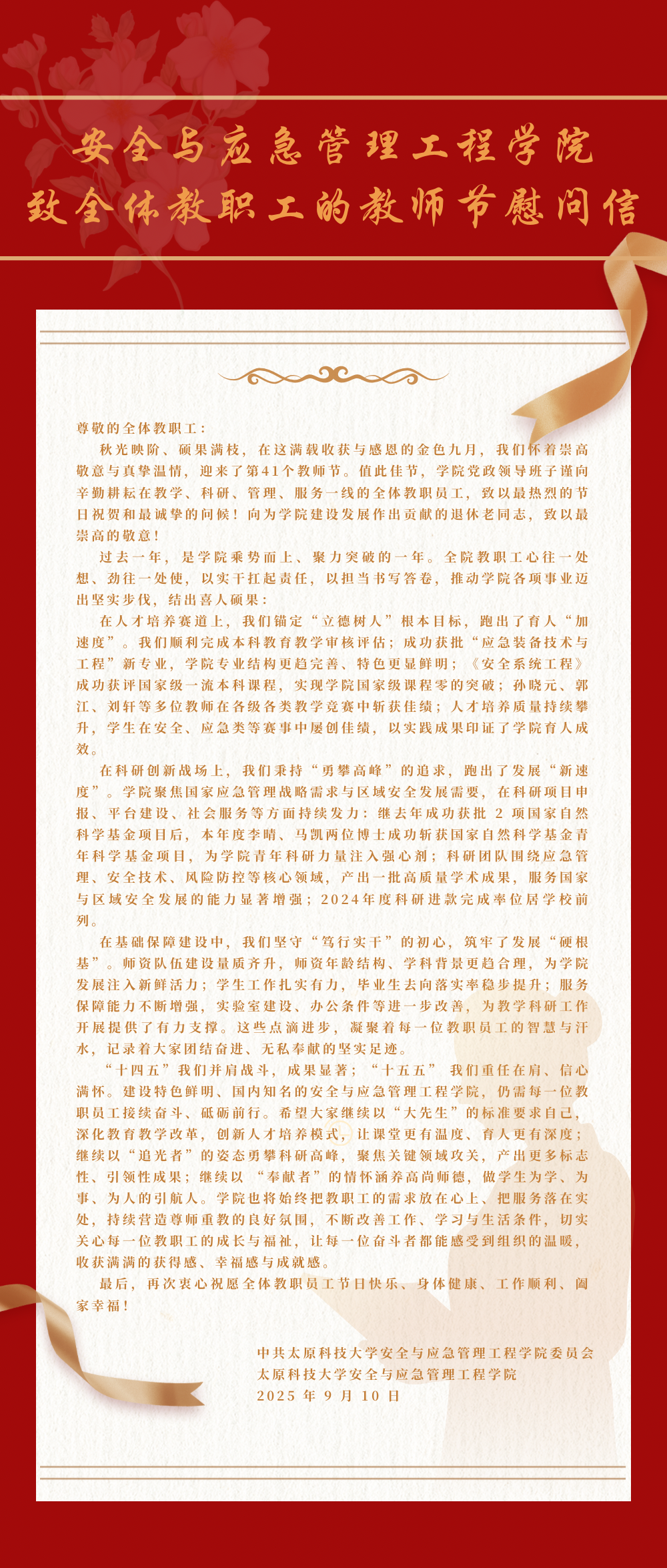 春风化雨 桃李芳菲 —— 安全与应急管理工程学...
