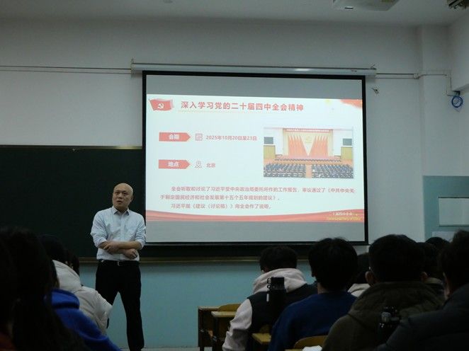 为推动党的二十届四中全会精神在青年学子中落地生根,引导我院学生将个人成长融入国家发展大局,1125日,马克思主义学院副院长卫郭敏应邀为我院学生党员、入党积极分子及学生干部开展专题宣讲报告会,报告由学院团委书记主持。